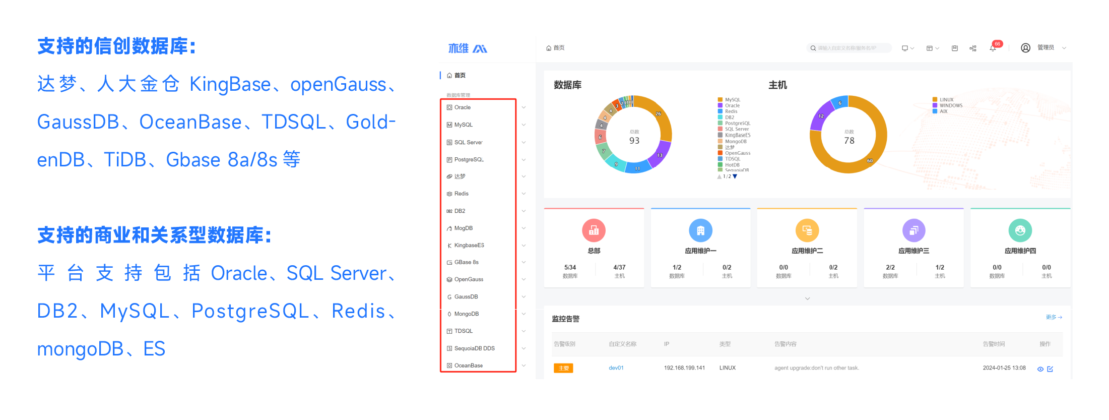 支持信創數據庫的接入和統一管理